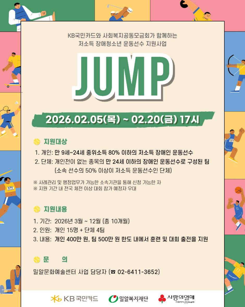 [밀알복지재단] 2026 점프(저소득 장애청소년 운동선수 지원) 모집공고 (~2/20)