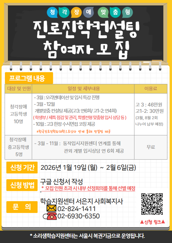 [삼성소리샘복지관] 26년 진로진학컨설팅 참여자 모집