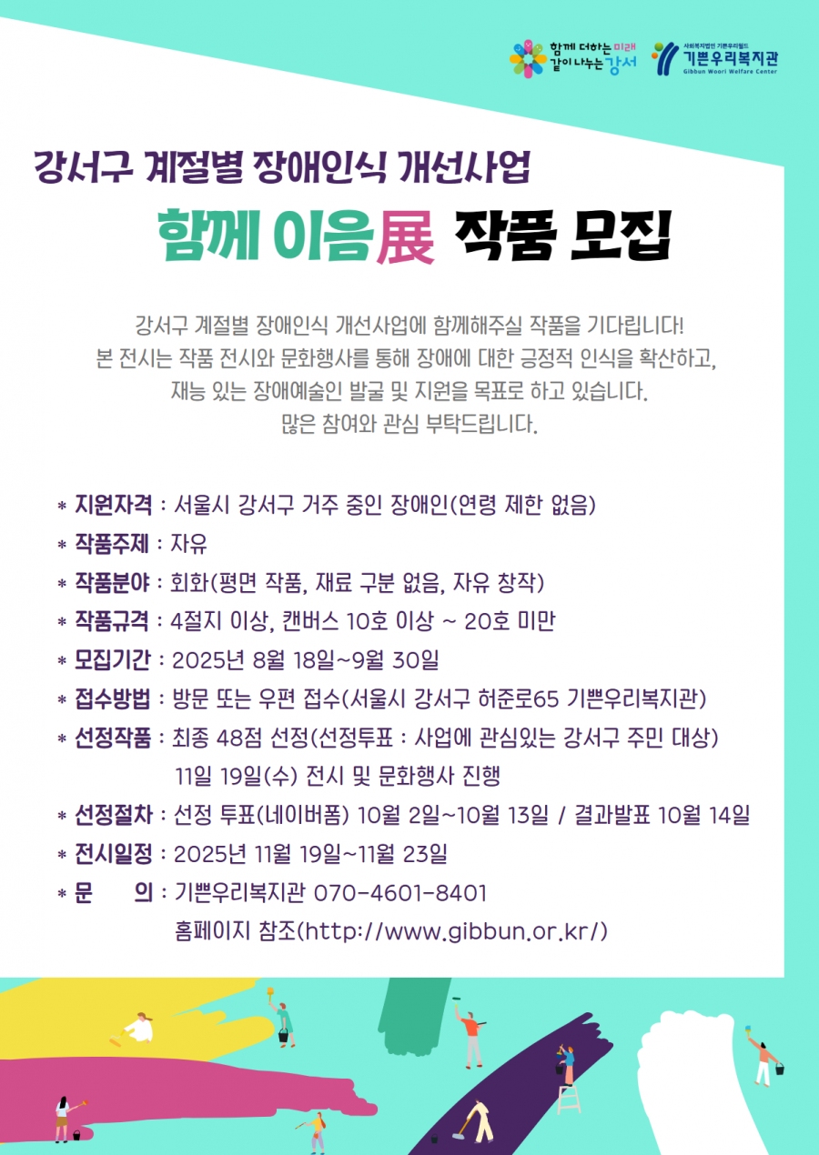 [기쁜우리복지관] 강서구 계절별 장애인식 개선사업 '함께 이음展' 작품 모집합니다.