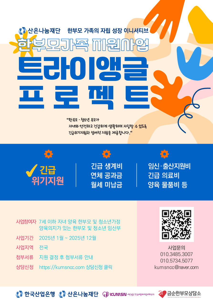 금순한부모상담소는 산은나눔재단에서 지원하는 트라이앵글 프로젝트를 진행하고 있습니다.