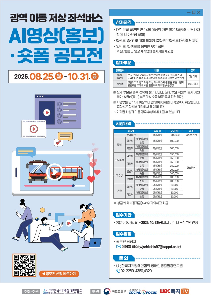 [한국지체장애인협회] 광역 이동 저상 좌석버스 AI 영상(홍보)·숏폼 공모전 접수 일정 연장 안내