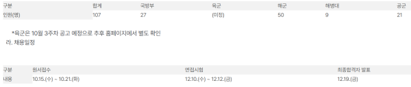 *육군은 10월 3주차 공고 예정으로 추후 홈페이지에서 별도 확인