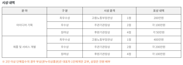 * 결과발표는 고용노동부 대표 누리집, 공모전 누리집 등에서 대국민 공개 예정