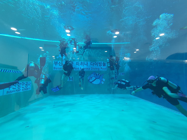 ▲ 부산항만공사(BPA)와 한국해양소년단 부산연맹은 20일 부산 북항마리나 다이빙풀에서 지역 척수장애인을 위한 스쿠버다이빙 체험행사를 개최했다. 이번 행사는 해양레저를 경험할 기회가 부족했던 척수장애인을 대상으로 한 사회공헌 프로그램으로, 부산시 장애인체육회 추천을 받아 선정된 척수장애인 10명이 참여했다. 참가자들은 스쿠버 전문 강사진의 1 대 1 맞춤형 지도로 수중 호흡과 동작을 익히고 물속에서 자유롭게 움직이는 특별한 경험을 즐겼다. (부산=연합뉴스)