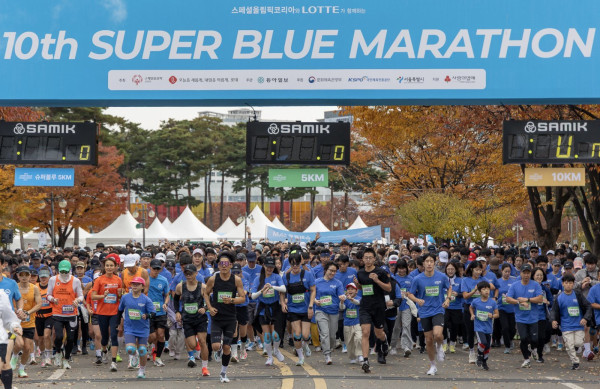 롯데가 8일 서울 마포구 상암동 평화의 공원 평화광장 일대에서 ‘제10회 슈퍼블루마라톤’을 개최했다. 장애에 대한 잘못된 인식을 개선하자는 취지로 기획했으며, 롯데와 스페셜올림픽코리아(SOK)가 주최하고 동아일보가 주관한다.